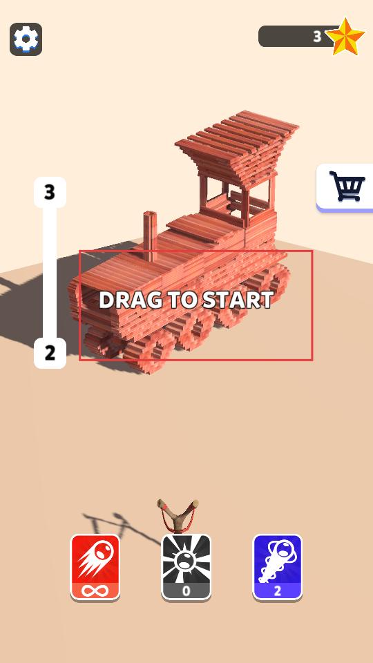 1、进入游戏,看到有DRAG TO START提示的界面,拖动屏幕,开始对目标建筑进行破坏操作。