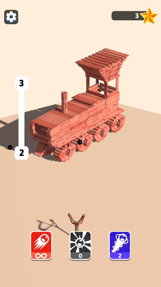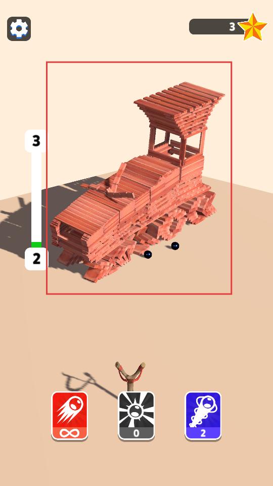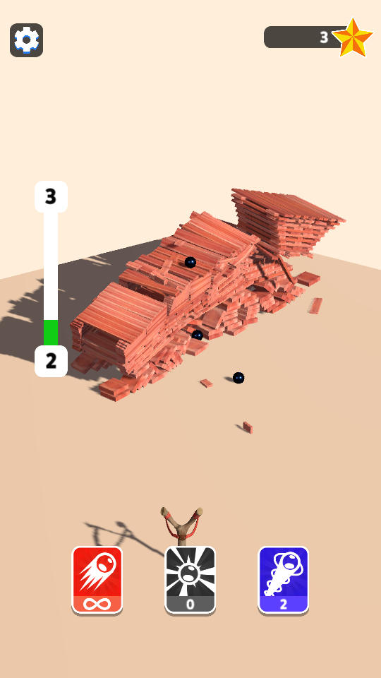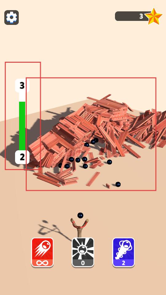 3、持续发射物体,不断对建筑造成更大的破坏,看着建筑逐渐坍塌,积累破坏的进度。