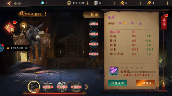 3、坐骑养成:优先升级坐骑,提升前期的战力,助力闯关难度。