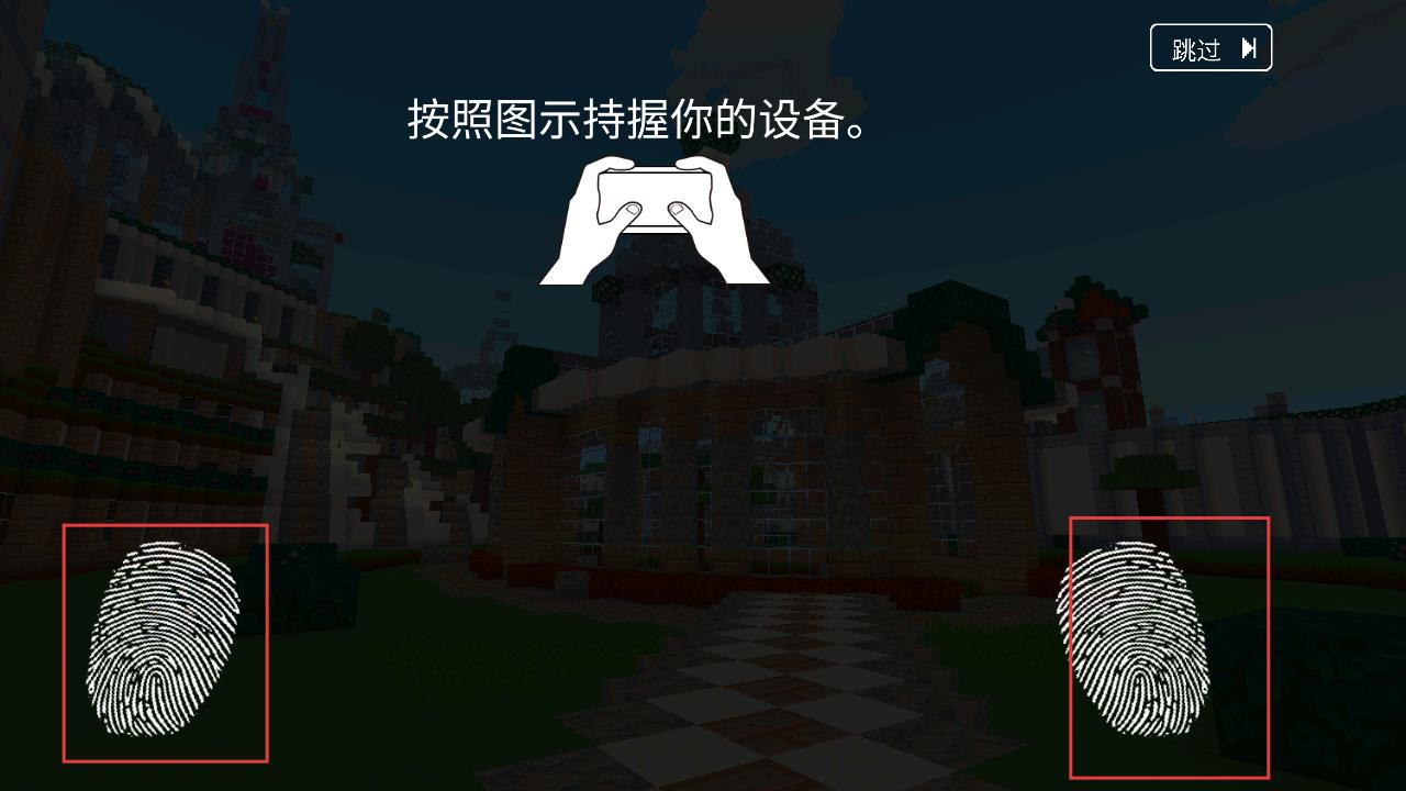 1、游戏开始,按照提示持握设备,通过左右两侧的指纹标识区域,来进行初步的操作适配,为后续游戏做准备。
