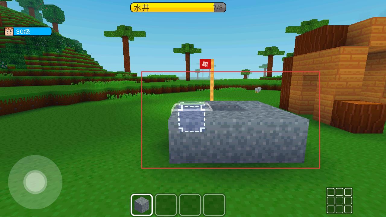 4、进入建造场景,可利用选取的方块,在如水井等建筑上进行搭建,发挥创意,打造属于自己的方块世界。