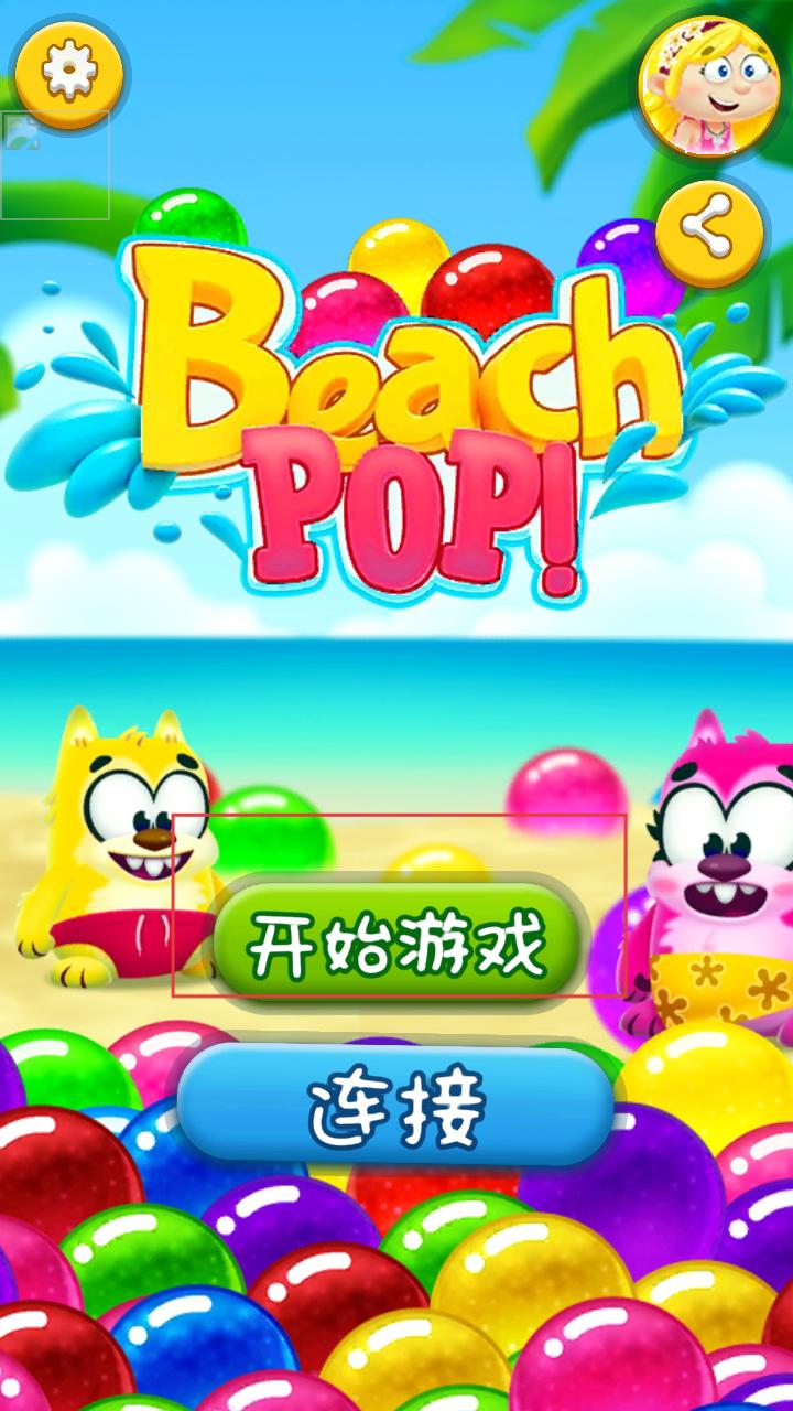 1、进入游戏,点击开始游戏按钮,就能开启在海滩场景下的泡泡消除冒险,准备迎接各种彩色泡泡。