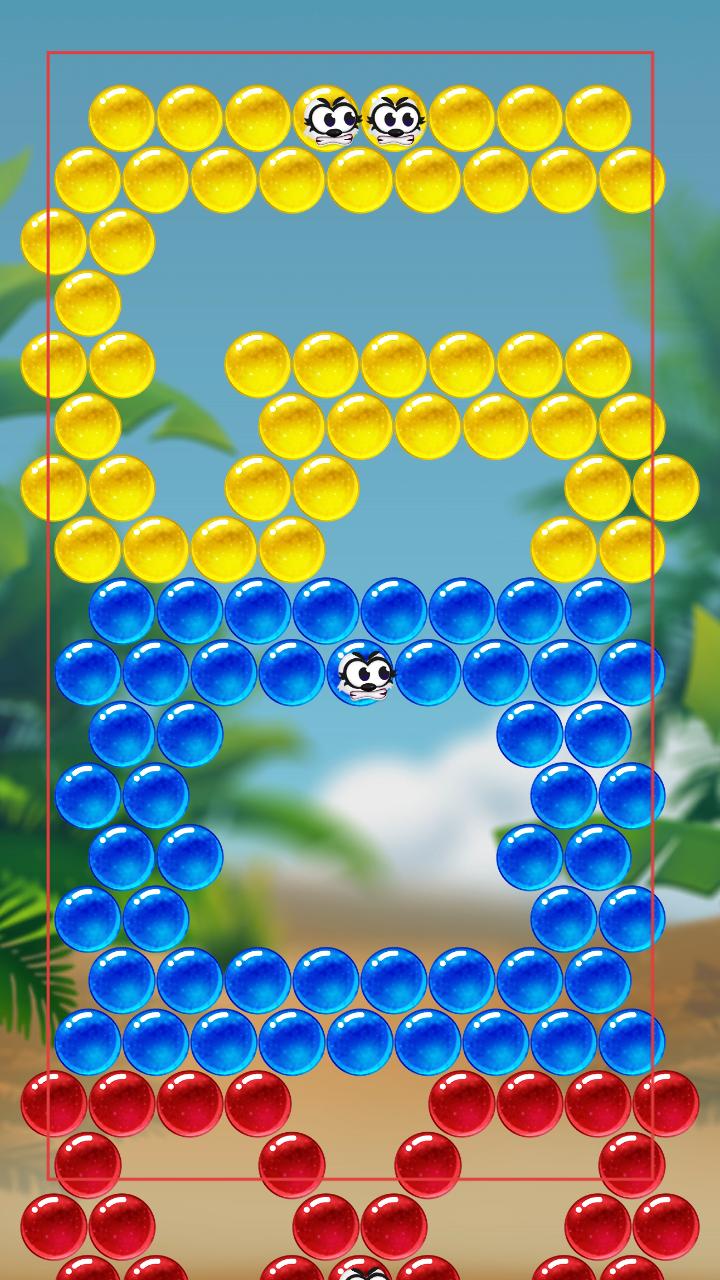 3、通过下方的发射装置,选择合适颜色的泡泡,瞄准上方相同颜色的泡泡区域发射,让它们聚集消除。