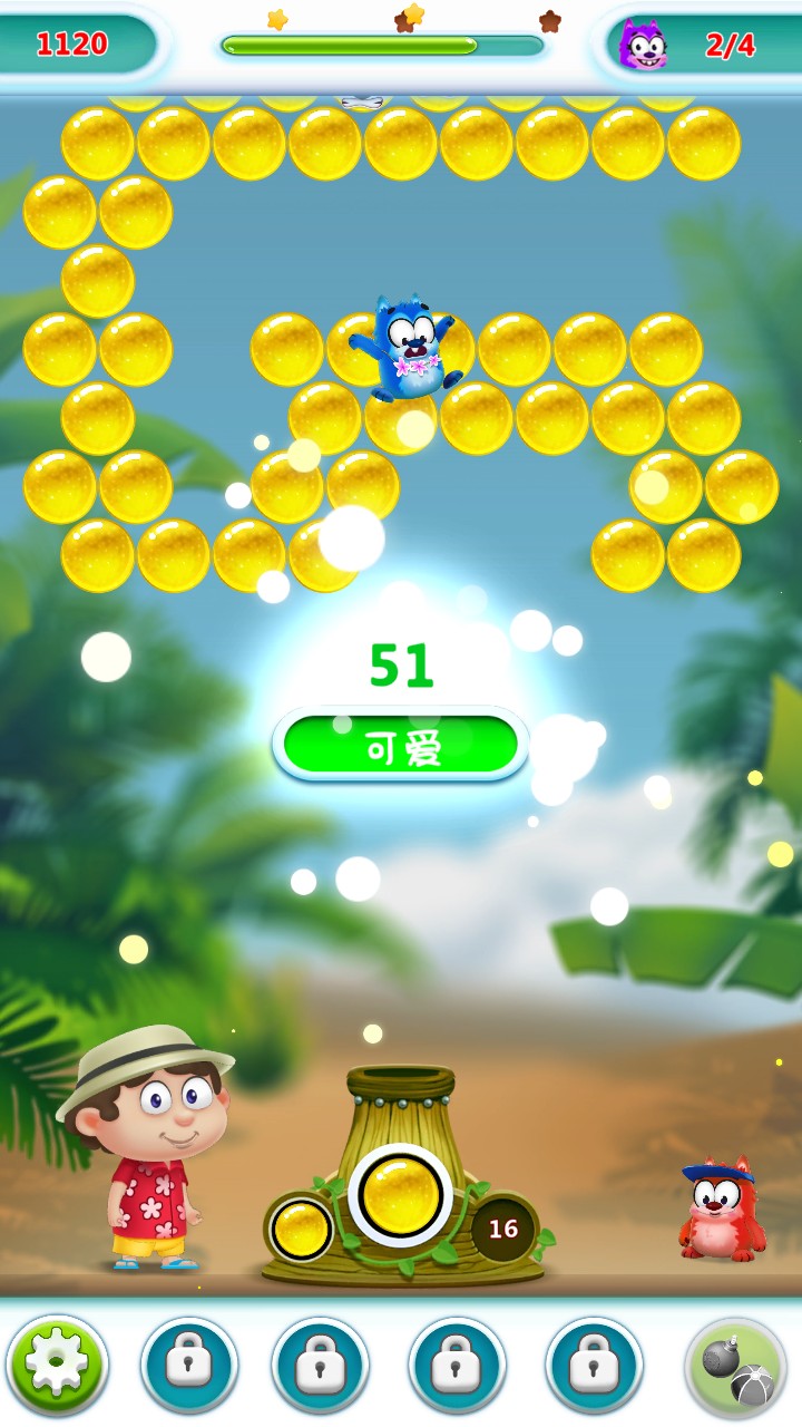 2、设计多达十余种特效道具和增益状态,彩虹泡泡可替代任何颜色进行消除连锁,闪电球能实现穿透式直线范围清场。