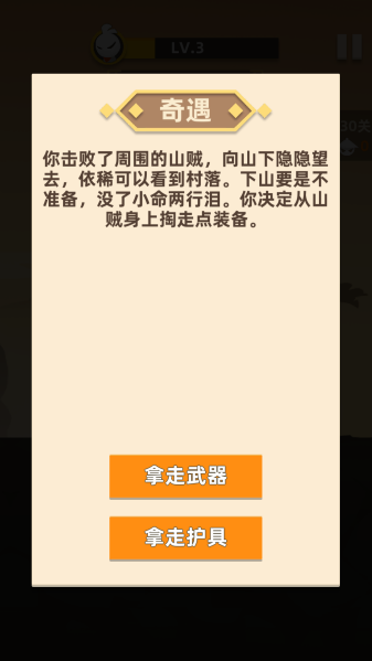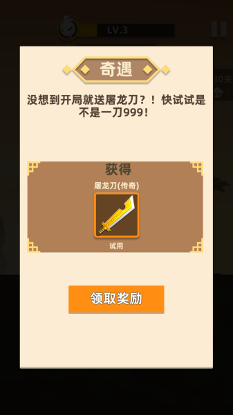 2、江湖奇遇探索:闯关过程触发隐藏事件,有机会获得屠龙宝刀等绝世神器,增添随机性惊喜。
