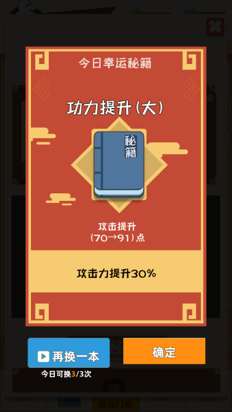 2、随机秘籍机制:闯关过程随机掉落多样秘籍,可组合出专属绝学,每次战斗都充满未知与策略性。