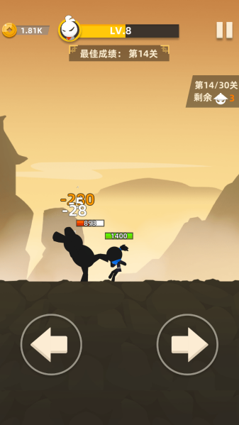 《我功夫贼熘》是一款融合经典影子画风与武侠元素的格斗型休闲手游。玩家化身火柴人侠客,在国风江湖中闯关进阶,从无名小卒成长为武学宗师。游戏采用一键式操作,搭配随机秘籍机制与丰富装备系统,玩家可组合独孤九剑、万剑朝宗等绝学,通过灵活走位与策略搭配击败强敌。关卡难度循序渐进,兼具休闲解压与策略挑战,更有奇遇事件与社交互动增添乐趣,让玩家在怀旧氛围中畅享武侠魅力。