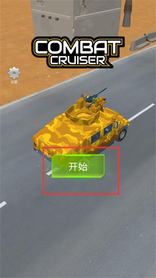 1、点击开始按钮,即可开启战斗巡洋舰的冒险之旅,驾驶迷彩战车,准备在道路上展开射击战斗,迎接各类挑战。
