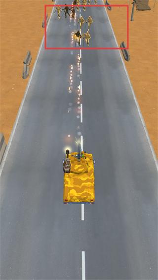 4、驾驶战车对抗大量敌人,利用升级后的武器火力,击败沿途出现的敌人,在道路上展开激烈战斗,争取战斗胜利。