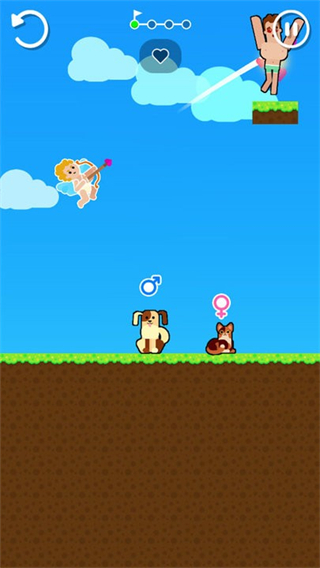 3、发射丘比特命中右侧的动物,触发对应的交互效果,为后续的合成操作铺垫条件。