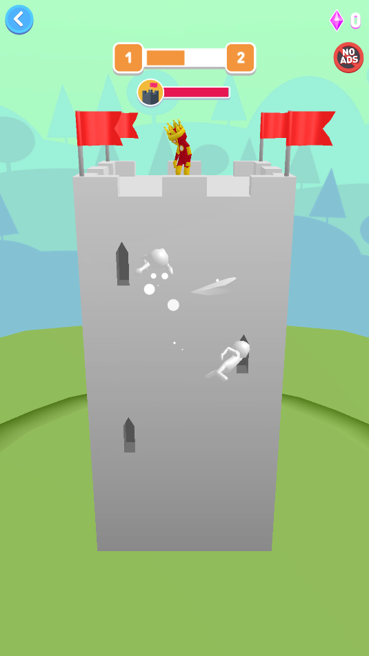 2、游戏中,下方有很多的小人向上攀爬,需向小人滑动屏幕切割,避免小人上塔。
