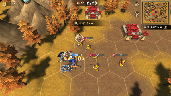 2、丰富地形要素:包含山地、河流、树林等多种地形,各有独特效果,影响战局走向。