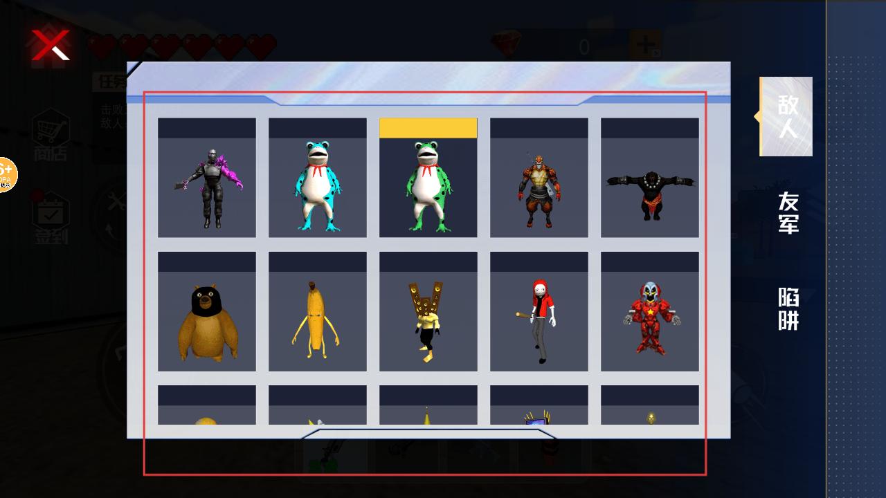 3、可以选择创造敌人和陷阱,像绿蛙蛙等敌人都能选择,增加游戏里的挑战和策略性。