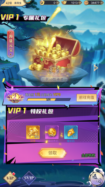 3、领新手福利:完成在线任务领VIP,登录领SSR伙伴,首充拿高返利资源。