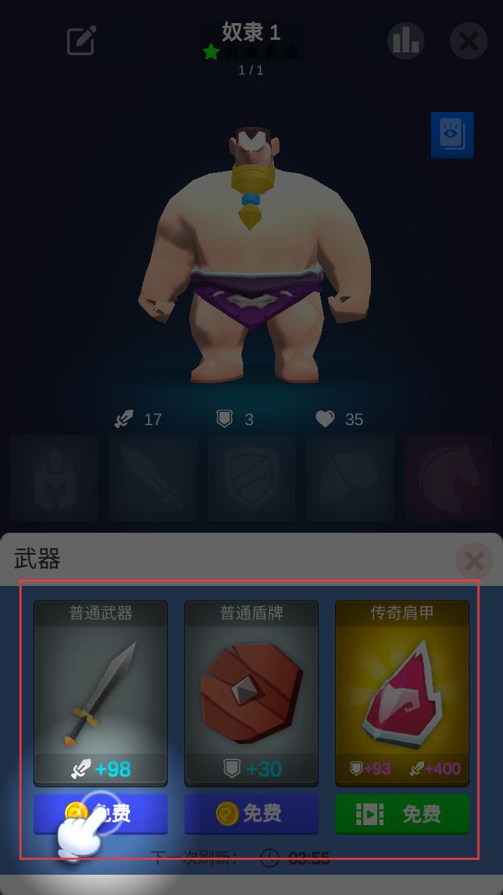 3、可为角斗士配备普通武器、普通盾牌、传奇肩甲等装备,提升其战斗能力。