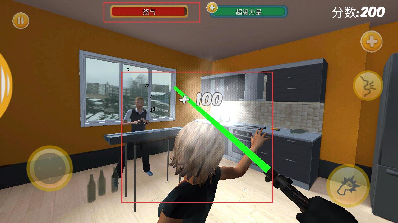 4、攻击邻居后分数增加,怒气值上升,继续攻击其他角色,体验暴揍的乐趣,不断提升分数。