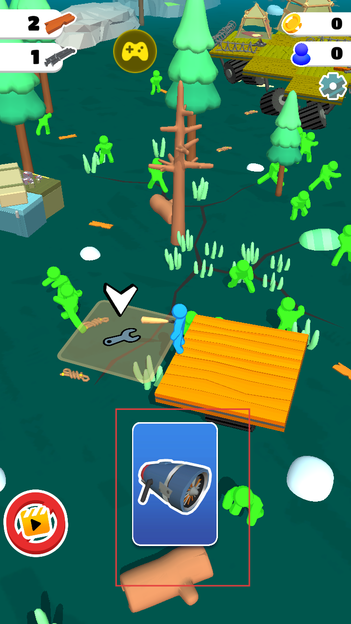1、在木筏上可获得喷气发动机等道具,这些道具能增强木筏功能,助力在丧尸水域中移动与生存,开启末日求生的关键一步。