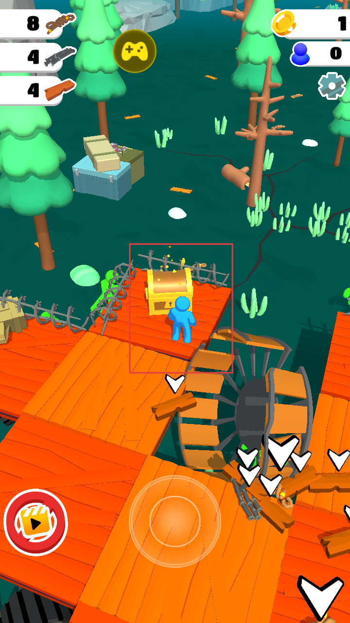 4、开启金色宝箱,获取金币等资源,这些资源可用于升级木筏或道具,让木筏在丧尸横行的水域中更好地生存。