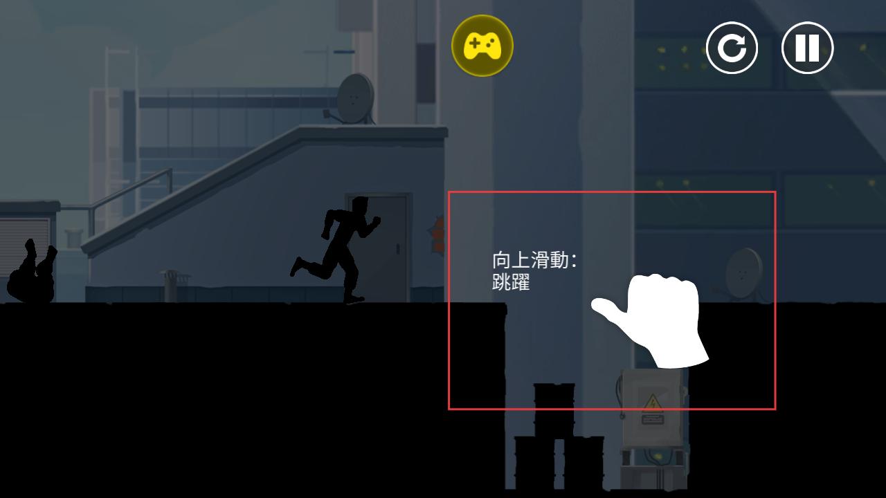3、游戏中向上滑动屏幕可让角色跳跃,通过简单手势操作完成基础动作,利用跳跃躲避障碍,在城市建筑间推进跑酷进程。