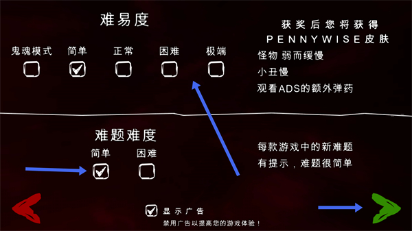 1、进入游戏可选择鬼魂模式、简单、正常等难易度,以及简单或困难的难题难度,选好后点击箭头按钮,开启充满恐怖解谜的冒险之旅。