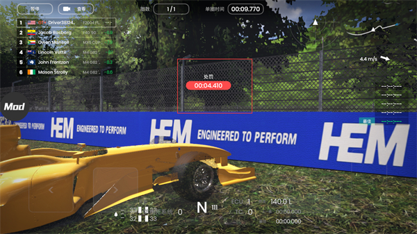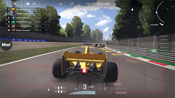 3、在赛道上驾驶赛车,需关注赛车的各项数据和排名,操控赛车与其他车手竞技,全力争夺领先位置。