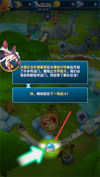 1、点击界面中的箭头按钮,前往下一场战斗的准备界面,推进游戏的冒险进程。
