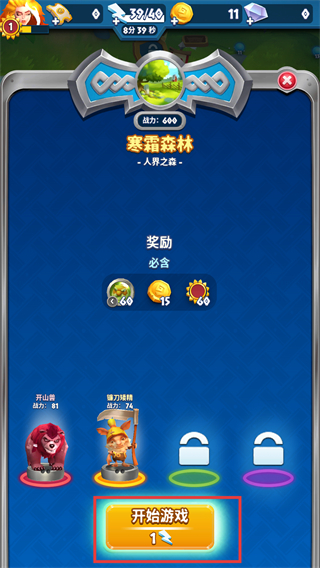 2、在寒霜森林界面点击开始游戏按钮,进入该关卡的战斗环节,开启对应的挑战。