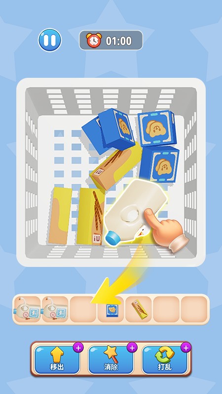 2、道具系统功能实用,移除清理障碍、打乱重组物品,组合使用突破卡关瓶颈。
