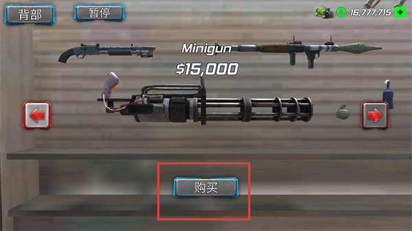 3、在武器界面选择想要的枪械,点击购买按钮,消耗对应数量的金币完成武器购买。