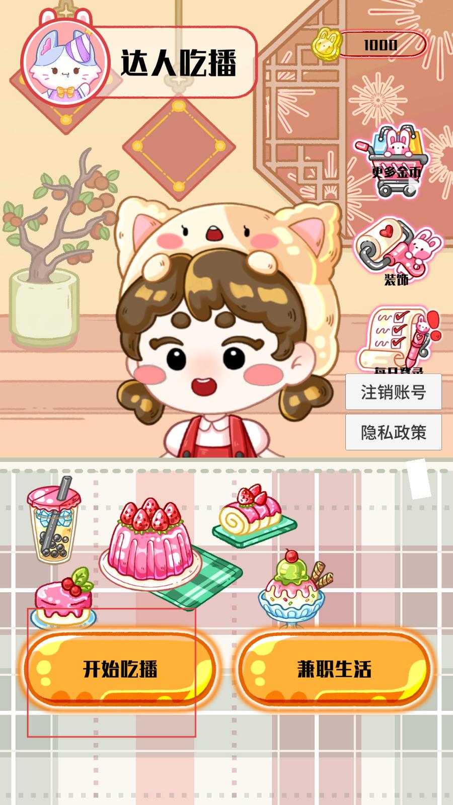 2、在达人吃播界面,点击开始吃播,展示各类美食,吸引顾客,为餐厅积累人气。