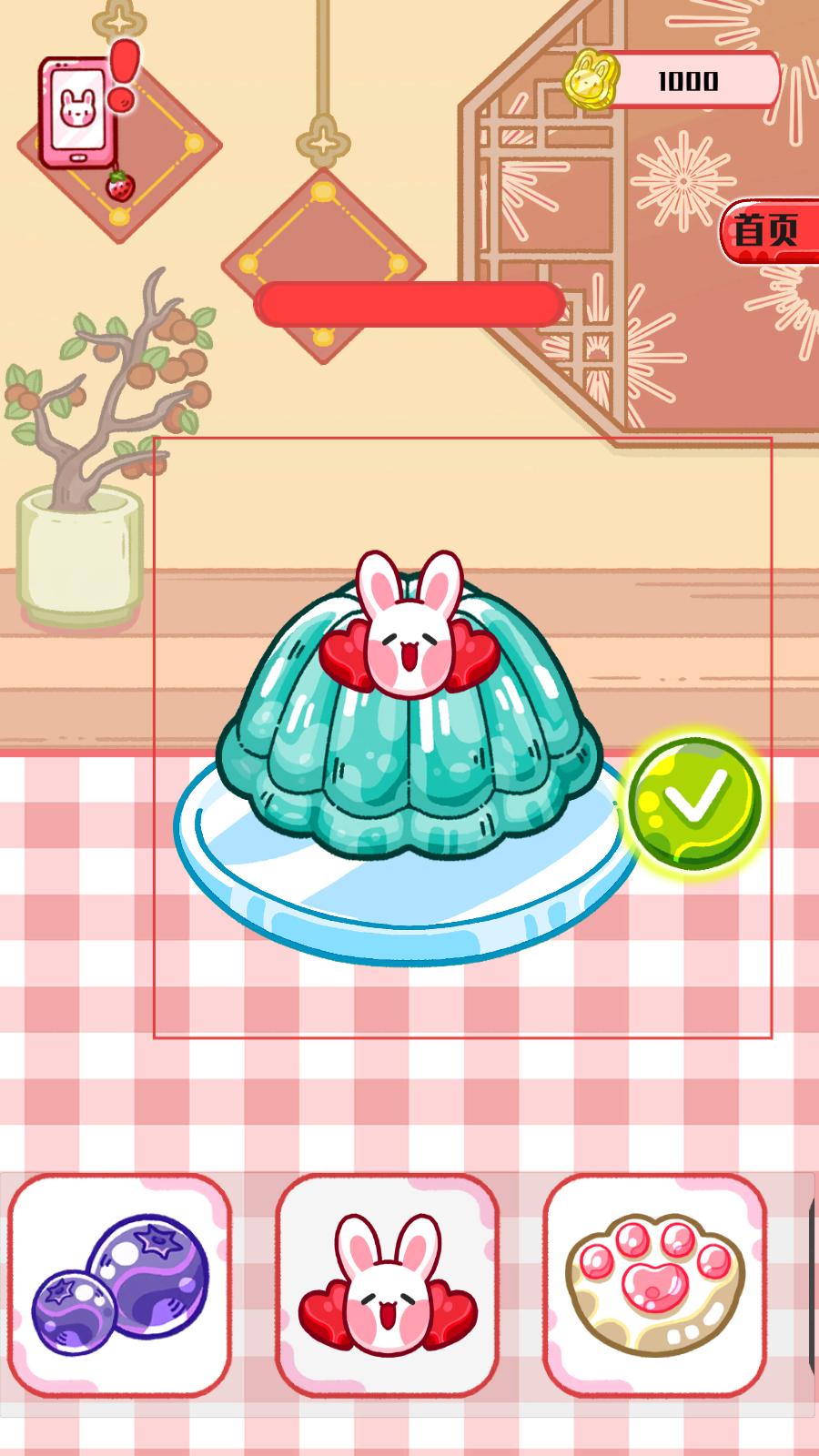 4、完成美食制作后,能看到造型可爱的成品,点击绿色对勾,确认美食制作完成,推进餐厅经营。