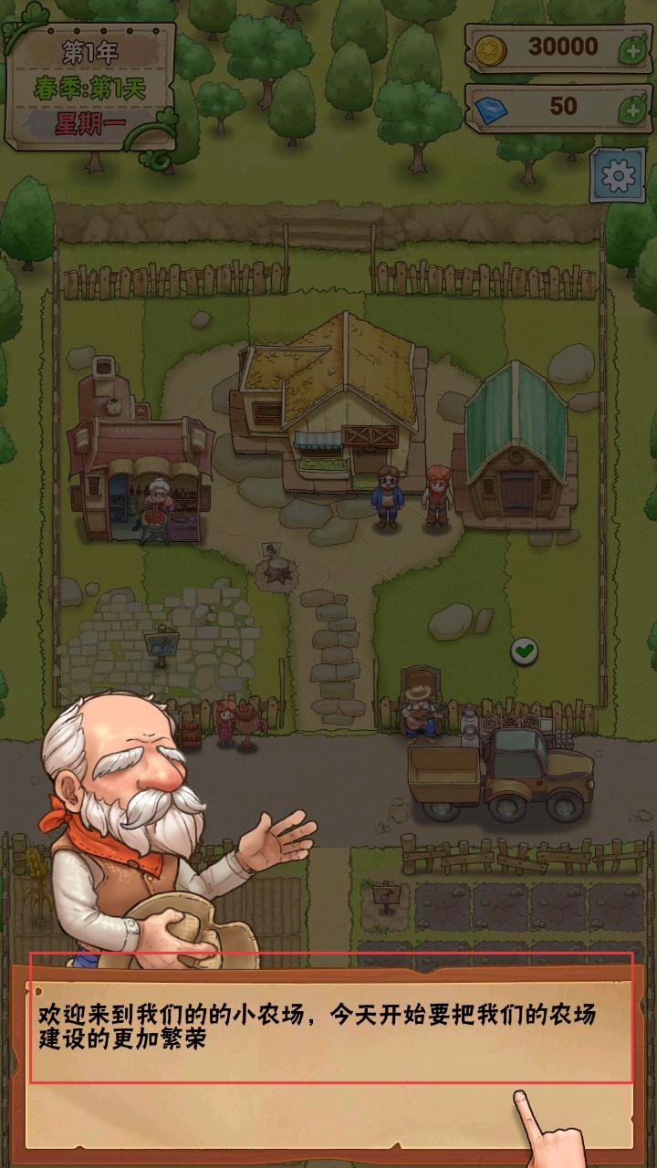 1、进入游戏,会有角色引导你开启农场建设,开启后就能着手把农场变得更繁荣,开启这段田园经营之旅。