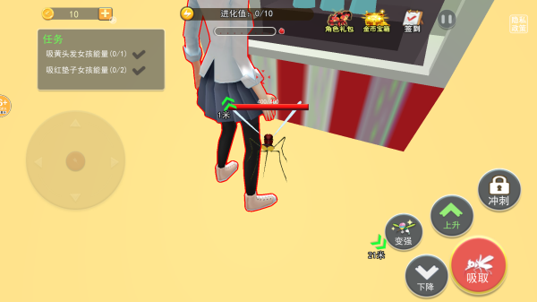 3、独特进化系统:通过吸血与任务积累进化值,提升蚊子生存力与吸血能力,解锁新外观与技能。