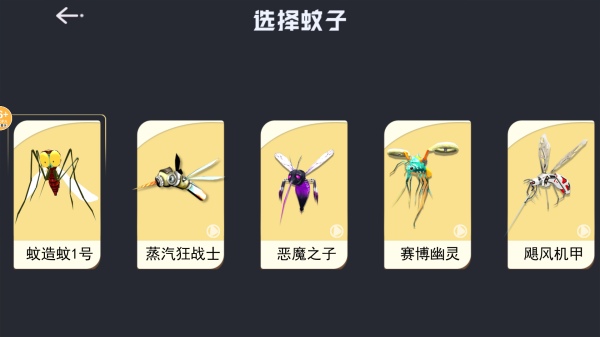 1、进入与选择:点击“开始游戏”,初始选择普通蚊子,高级品种可通过观看视频解锁。