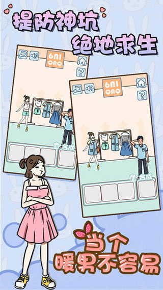 《当个暖男不容易》是一款温情模拟类手游,以完成暖心任务、维护人际关系、应对日常场景为核心玩法。采用治愈卡通画风,场景含咖啡厅、公园、公寓等生活空间,角色形象柔和亲切。核心玩法为在不同场景中做出暖心选择(如帮他人解决困难、准备惊喜),积累好感值解锁新互动与剧情,搭配轻柔音效,兼具模拟趣味与情感共鸣。