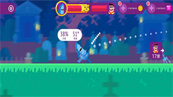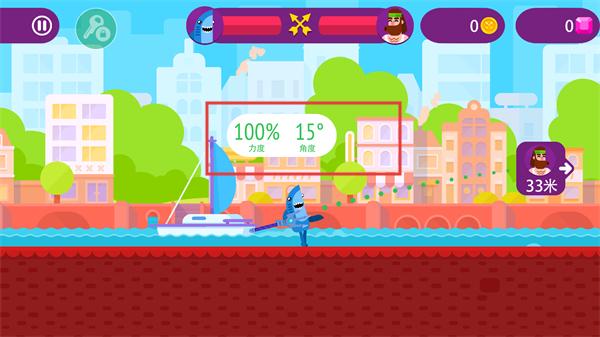 3、射击前调整力度和角度,如将力度调至100、角度设为15,计算好弹道,为精准射击做准备。