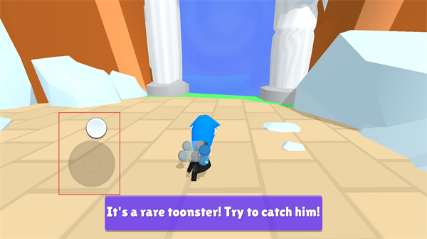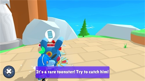1、点击左侧的圆形操控按钮,控制角色向目标方向移动,靠近前方出现的稀有toonster以便进行捕捉。
