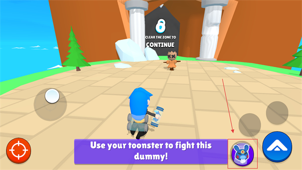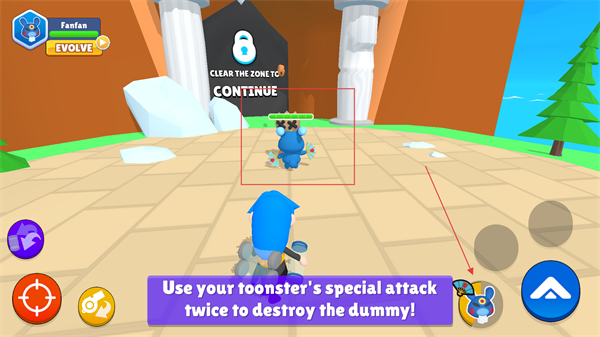 4、点击对应按钮触发toonster的特殊攻击,连续发动两次该技能,摧毁前方的假人完成当前任务。
