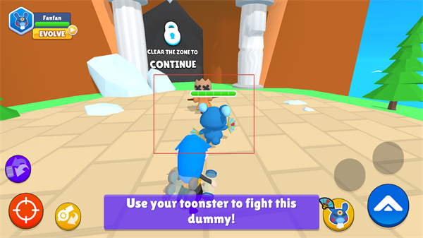 3、操控已召唤的toonster发动攻击,命中前方的假人,消耗其生命值推进对战进度。