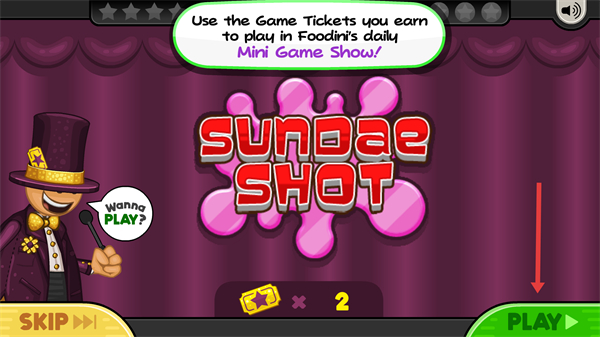 1、消耗2张Game Tickets,点击PLAY按钮进入Sundae Shot小游戏,参与每日迷你游戏挑战。