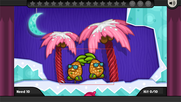3、射击出现的菠萝目标,累计完成2次命中,向Need10的目标推进小游戏进度。