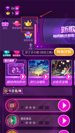 1、点击界面上方的炫彩商店选项,进入商店界面,开启购物相关的操作流程。