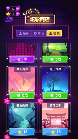 4、切换到商店的场景分类,选择想要的场景,消耗对应的皇冠道具,兑换并使用该场景。