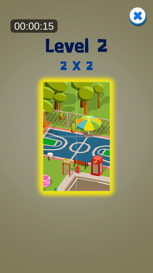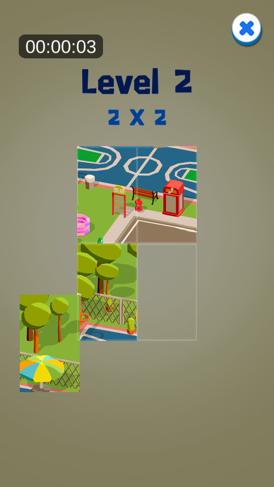2、来到关卡界面,面对如2x2形式的关卡布局,需观察场景内废弃物品位置,为回收行动做规划。