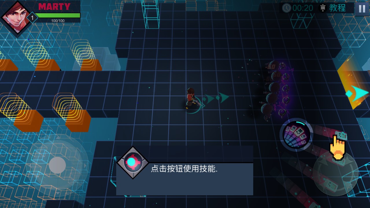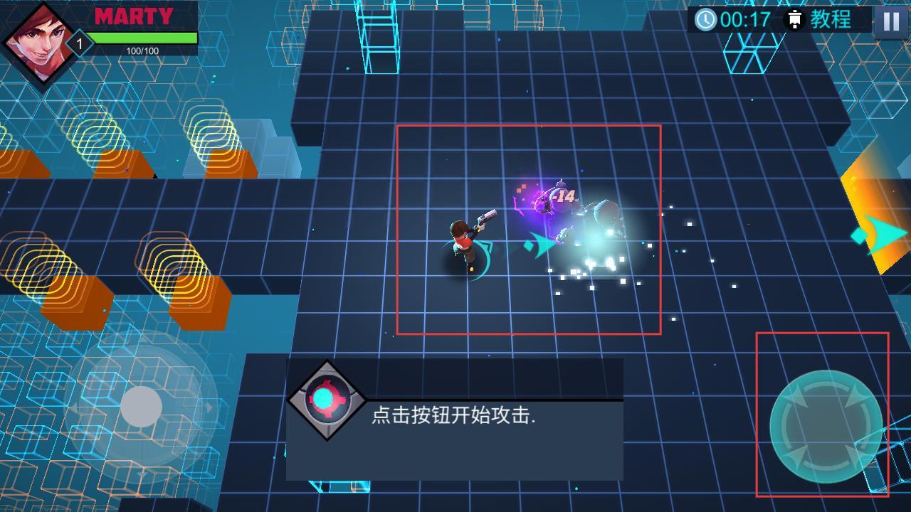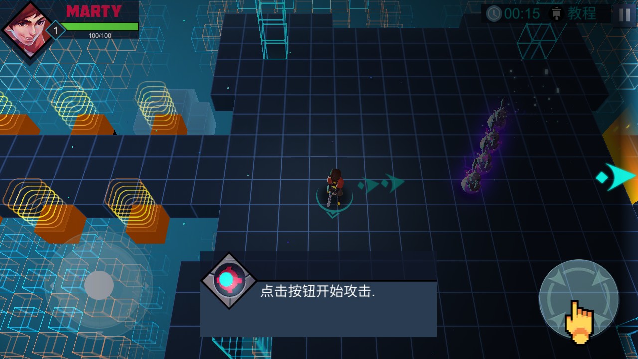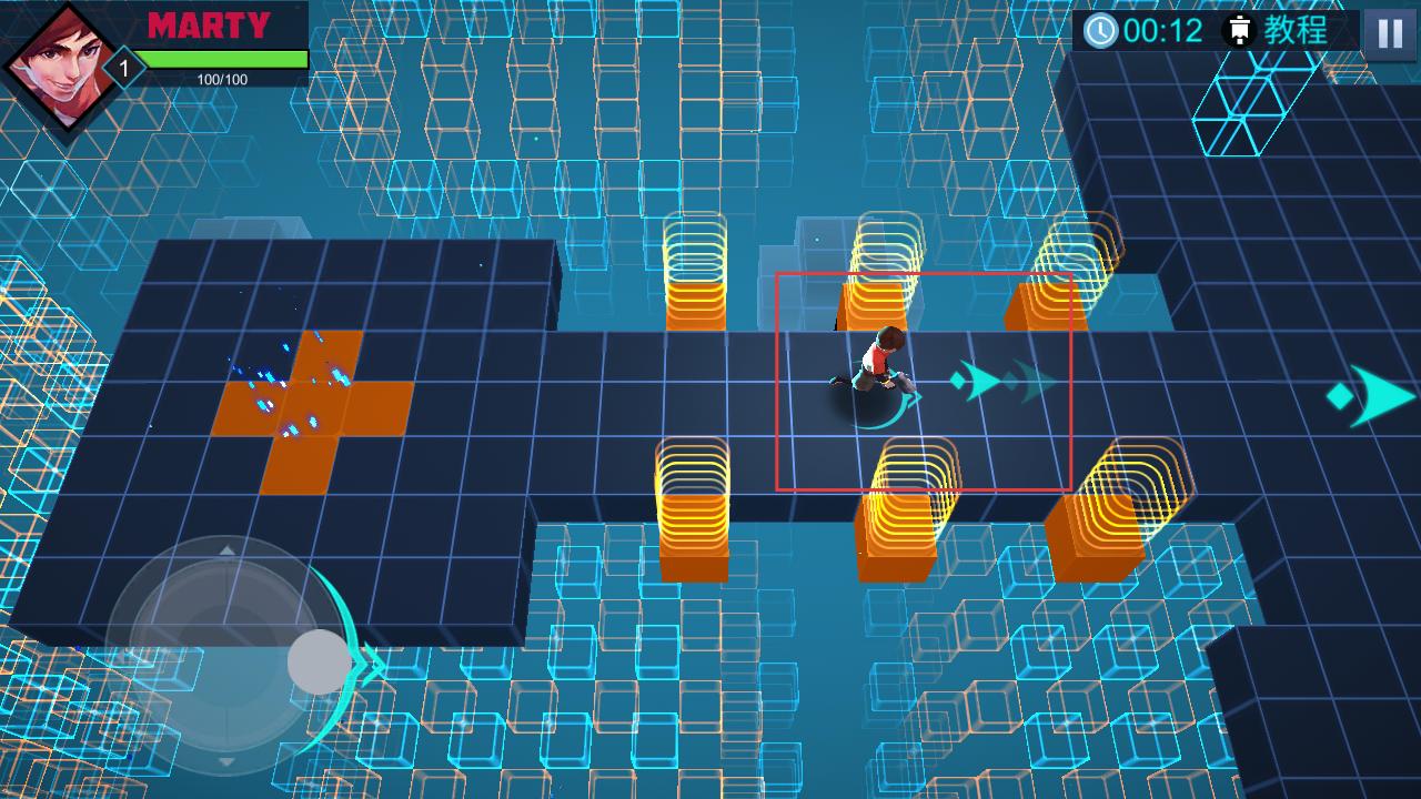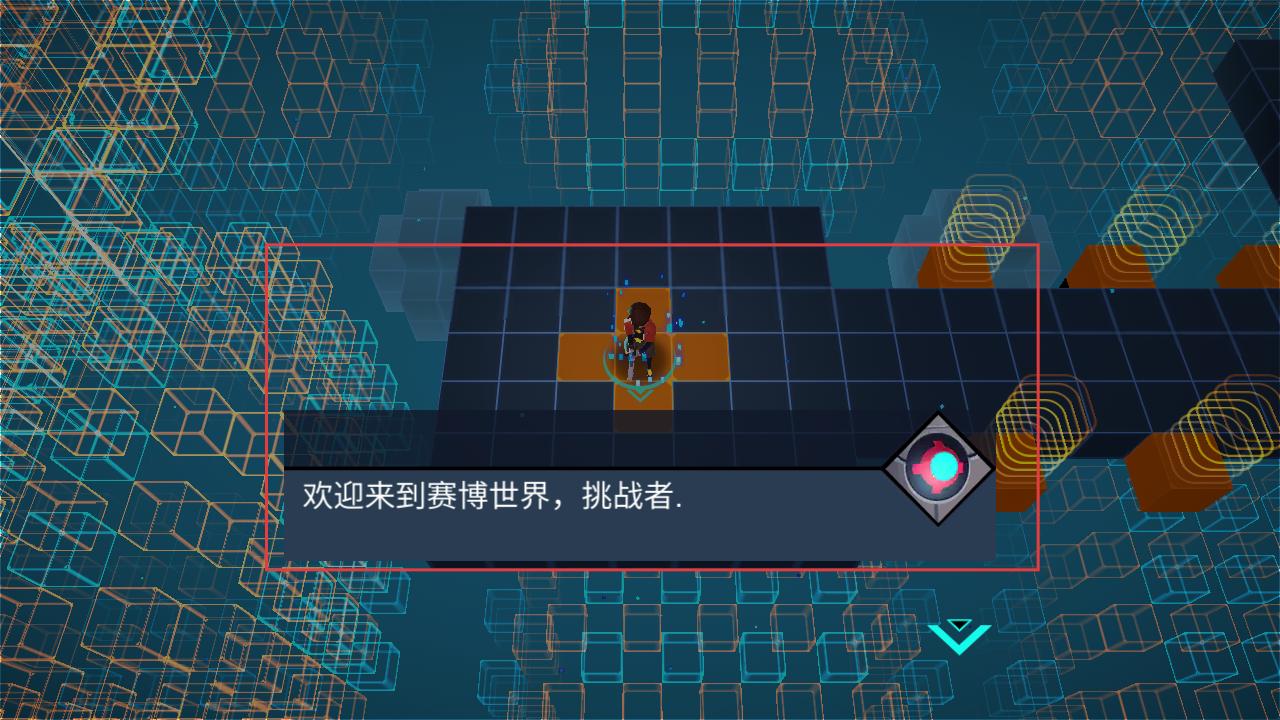 2、操控角色在赛博空间的网格平台上移动,利用场景中的元素,朝着目标方向前进。