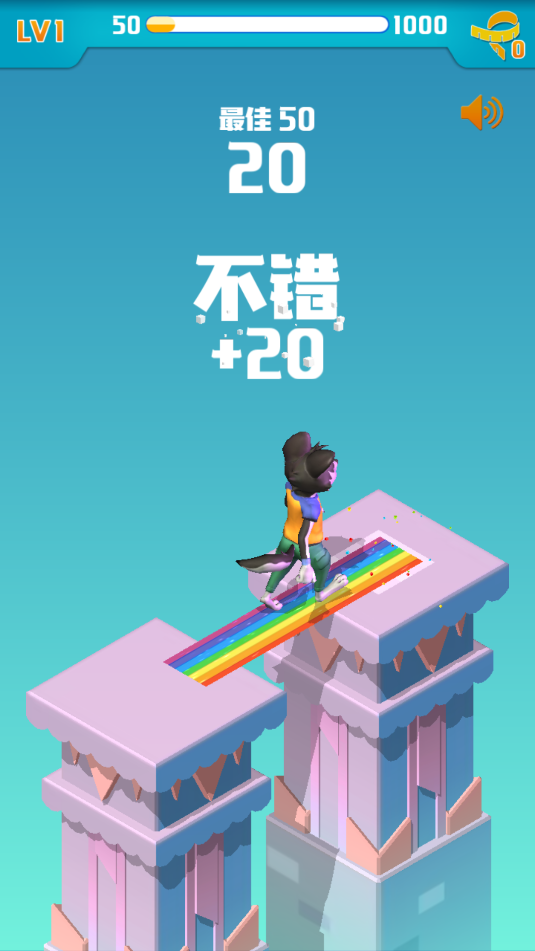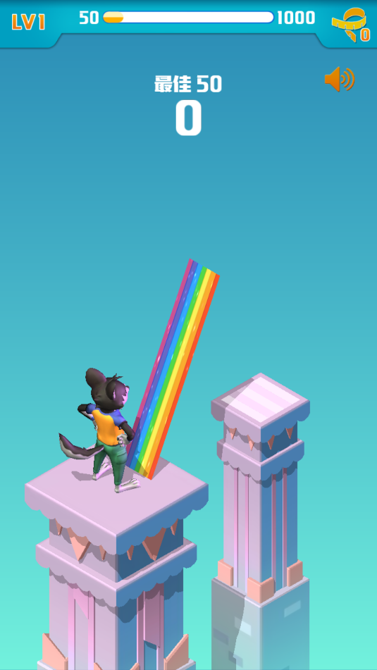 2、游戏中,点击按住屏幕1-2秒,彩虹桥就会从脚下长出来。