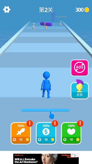 1、进入游戏后,操控角色开启跑酷旅程,沿途主动吸纳白色人群加入队伍,不断扩充人数规模,为后续攻城关卡储备充足实力。