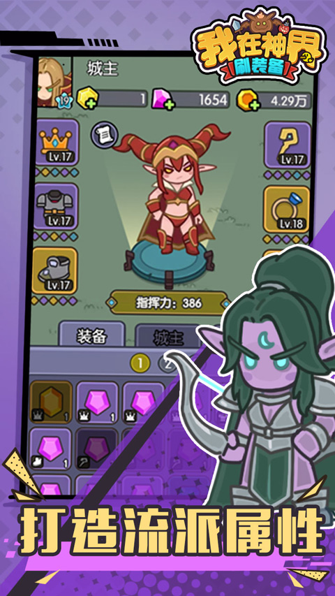 《我在神界刷装备》是一款魔幻题材肉鸽塔防手游,以装备获取、英雄养成、城池防御为核心玩法。采用简约魔幻画风,场景含森林、雪山、荒漠等区域,道具含武器装备、属性宝石、城主信物,元素为装备等级、英雄战力、防御进度、装备图鉴。核心玩法为搭配英雄阵容守卫城池,击败敌人掉落装备,通过宝石镶嵌强化战力,搭配技能光效与战斗音效,兼具策略属性与养成趣味,适配休闲刷装场景。