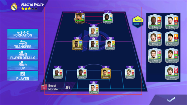 2、在阵容界面选择阵型,调整球员在场上的位置,搭配替补球员,完成比赛前的阵容部署。