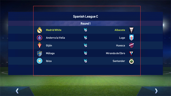 4、查看Spanish League C的Round1赛程,找到自己球队的对战对手,准备参与本轮联赛的比赛。